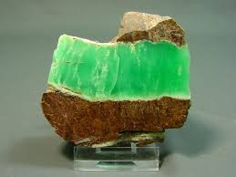 Хризопраз - просвечивающая разновидность халцедона красивого зеленого, яблочно-зеленого или голубовато-зеленого цвета, который появляется благодаря примеси никеля. Характерный цвет хризопраза блекнет при нагревании или длительном освещении солнечными лучами (потеря воды). Название от греч. празос - "лук порей", хризос - "золото".